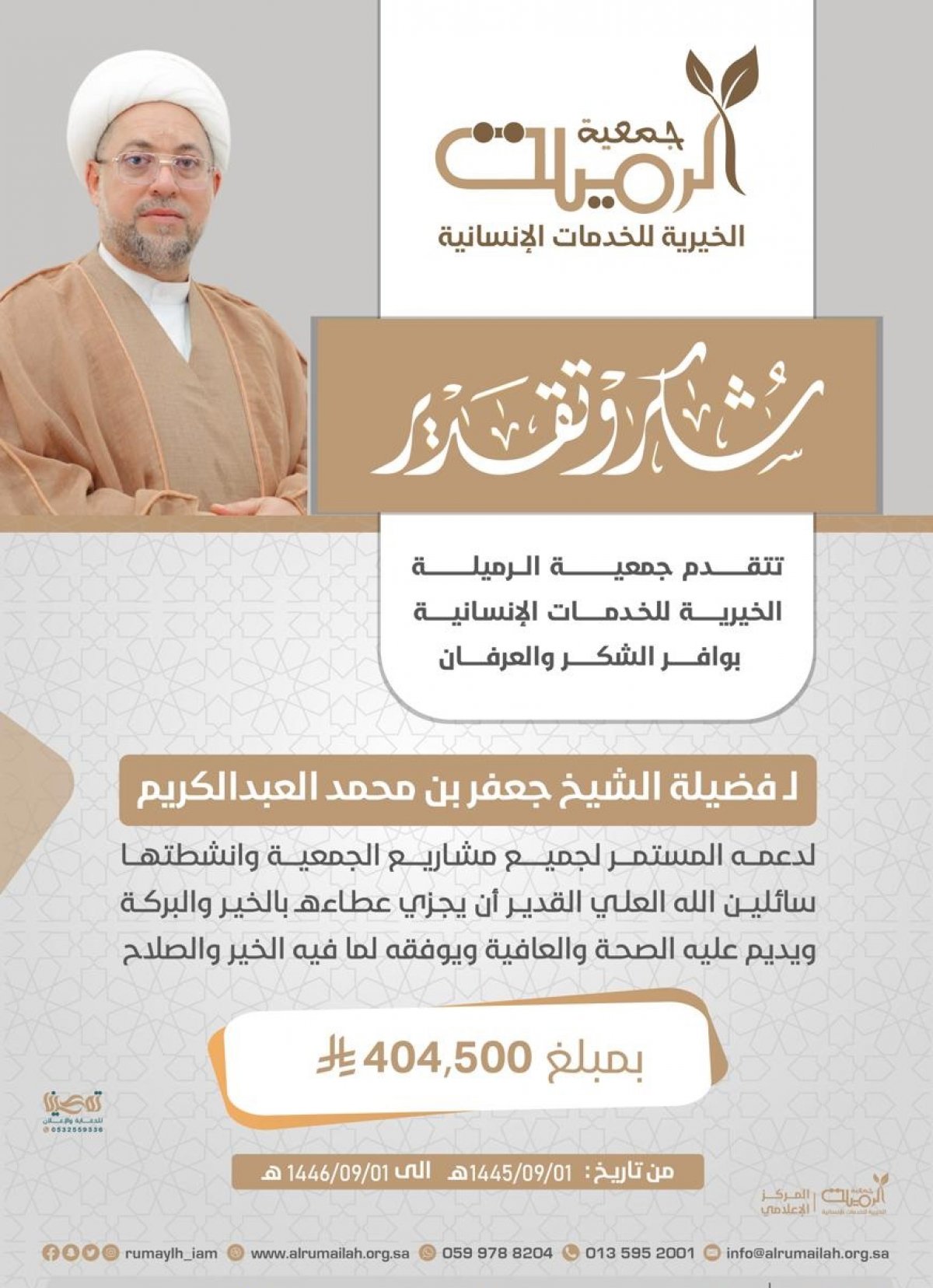 شكر و تقدير للشيخ جعفر العبدالكريم